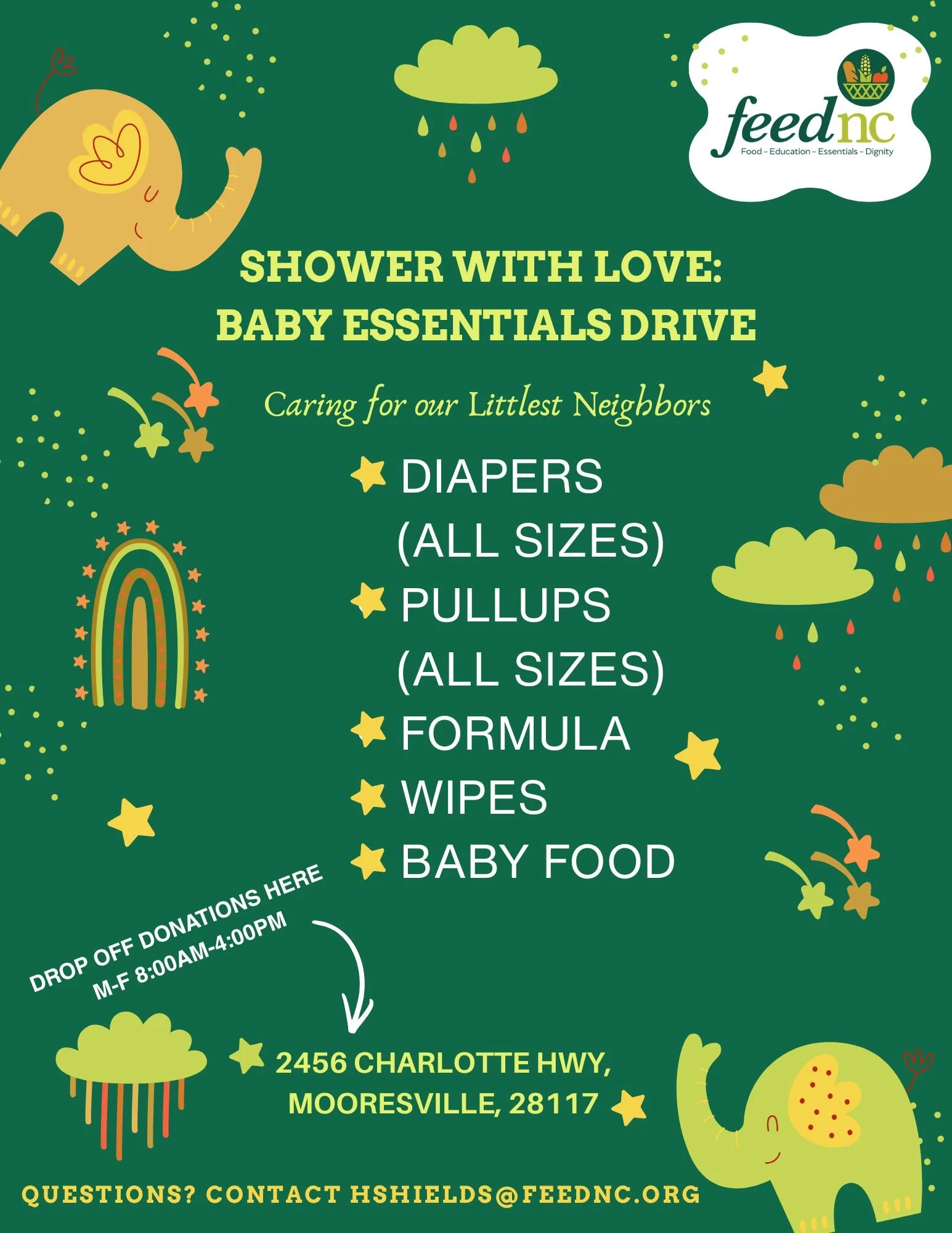 Household Items (Please Contact Holly Shields hshields@feednc.org to coordinate)